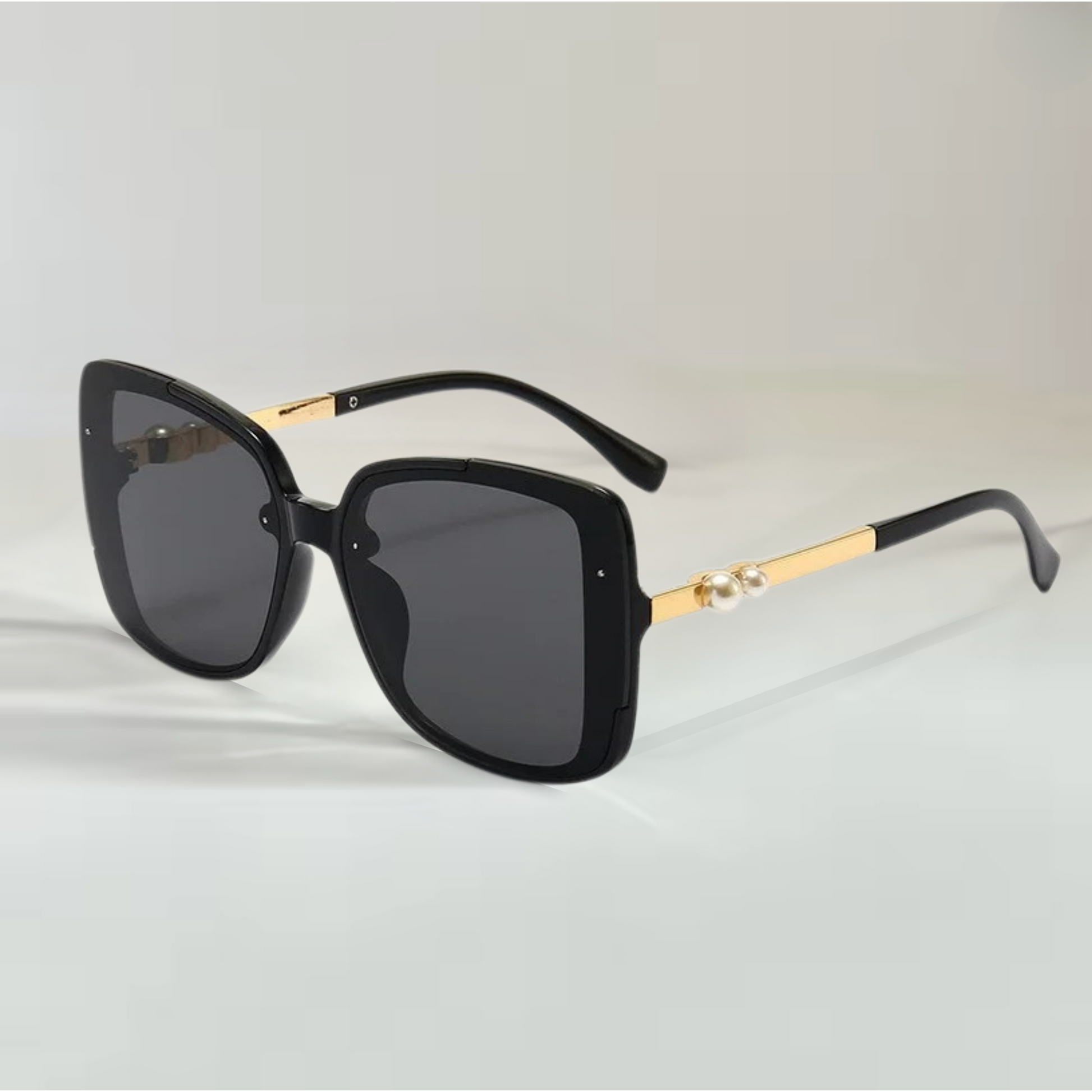 Elevate your gaze with iconic oversized lenses accented by delicate pearl accents on sleek gold temples. Experience all-day comfort and complete UV 400 protection.