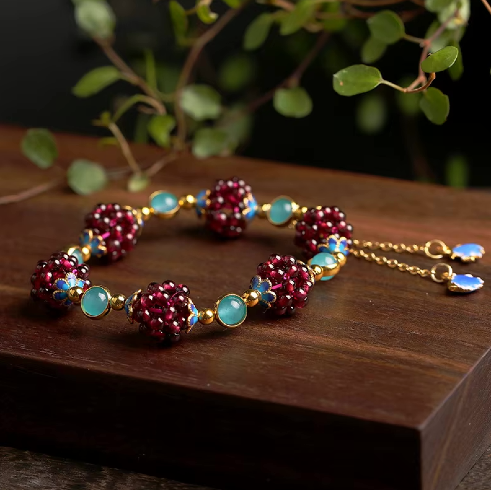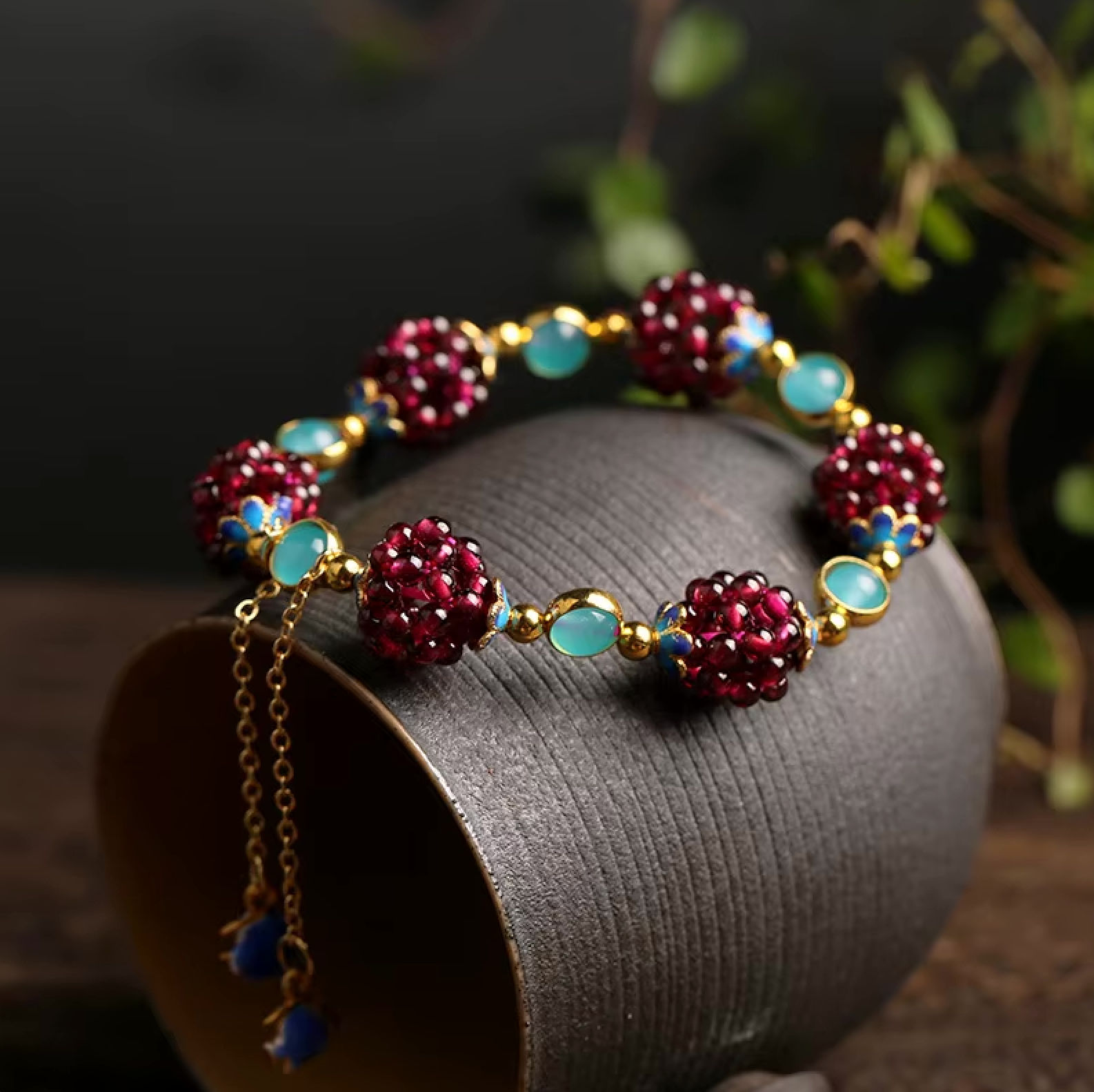 Embrace the fall season with a touch of deep, rich garnet. Designed to complement the warm hues of autumn, this bracelet adds a rich burst of color to any look, from a cozy sweater to a festive evening.