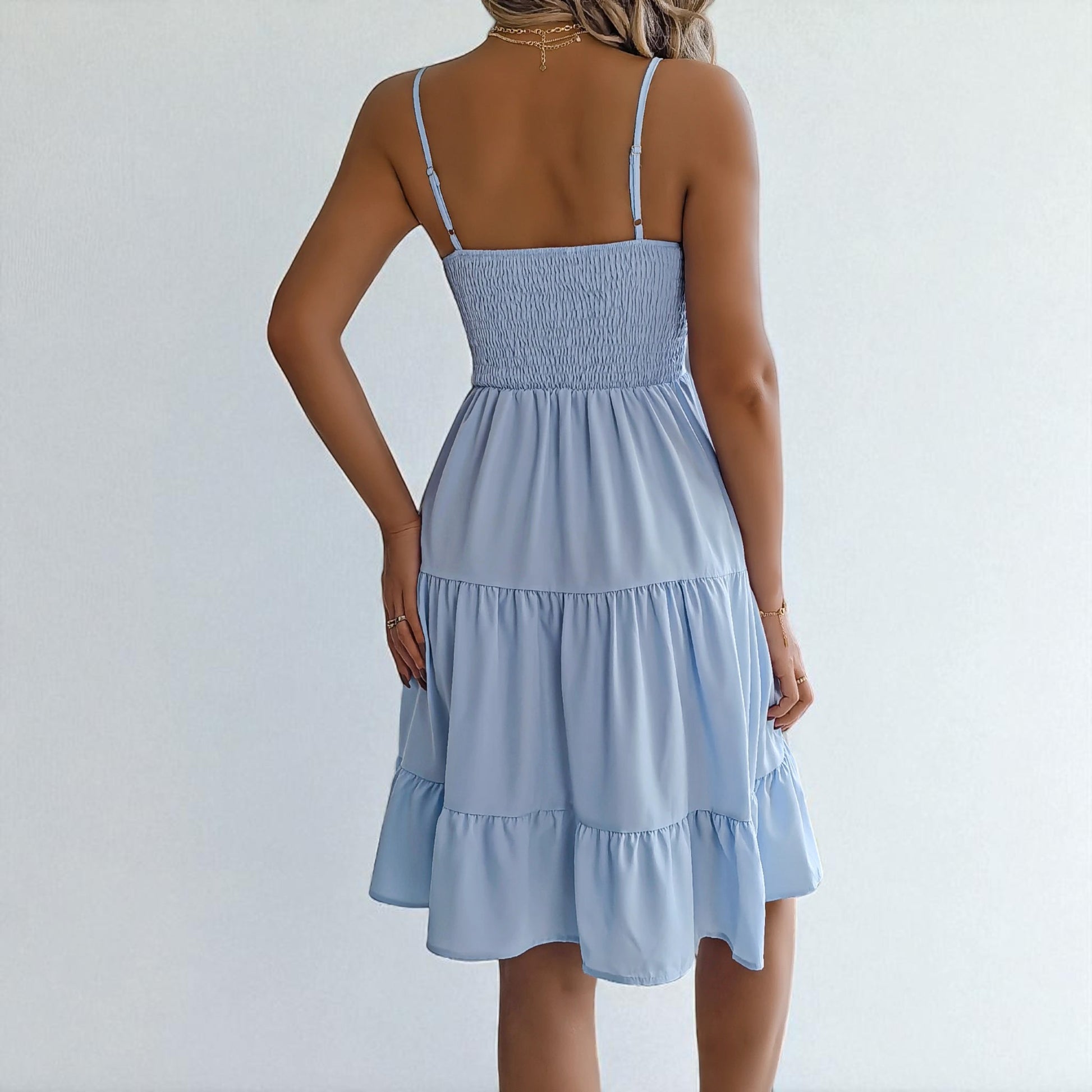 This Golden Hour Mini Dress is all about flattering style and comfy vibes for sunny days. It’s got adjustable spaghetti straps and a cinching waist, plus fun ruffled layers for that perfect fit & flare look.