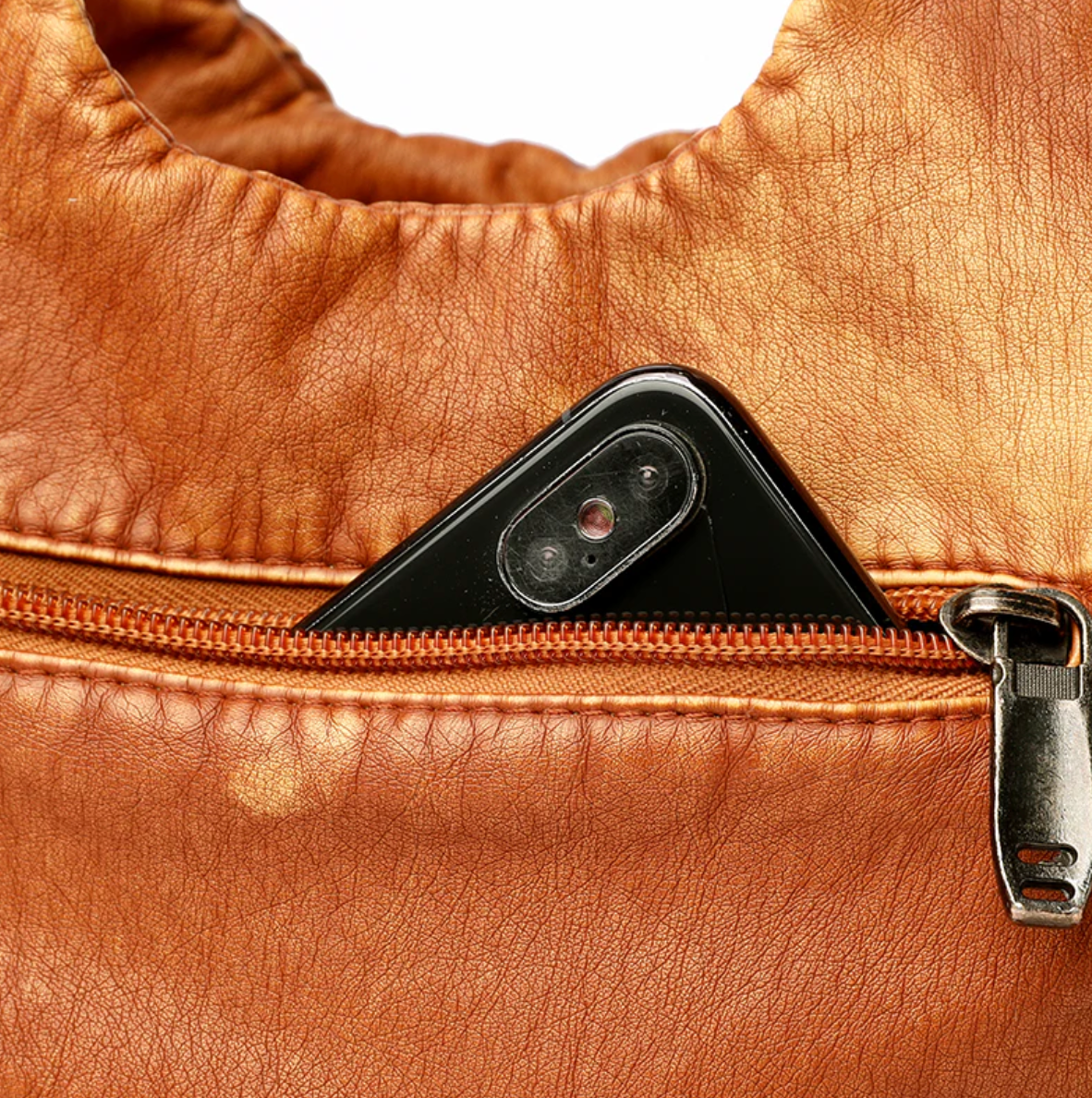 The bag's relaxed, slouchy shape offers a carefree, bohemian vintage style. It's a perfect accessory for your everyday adventures, with a spacious, multi-pocketed interior and a versatile strap that can be worn as a shoulder or crossbody bag.