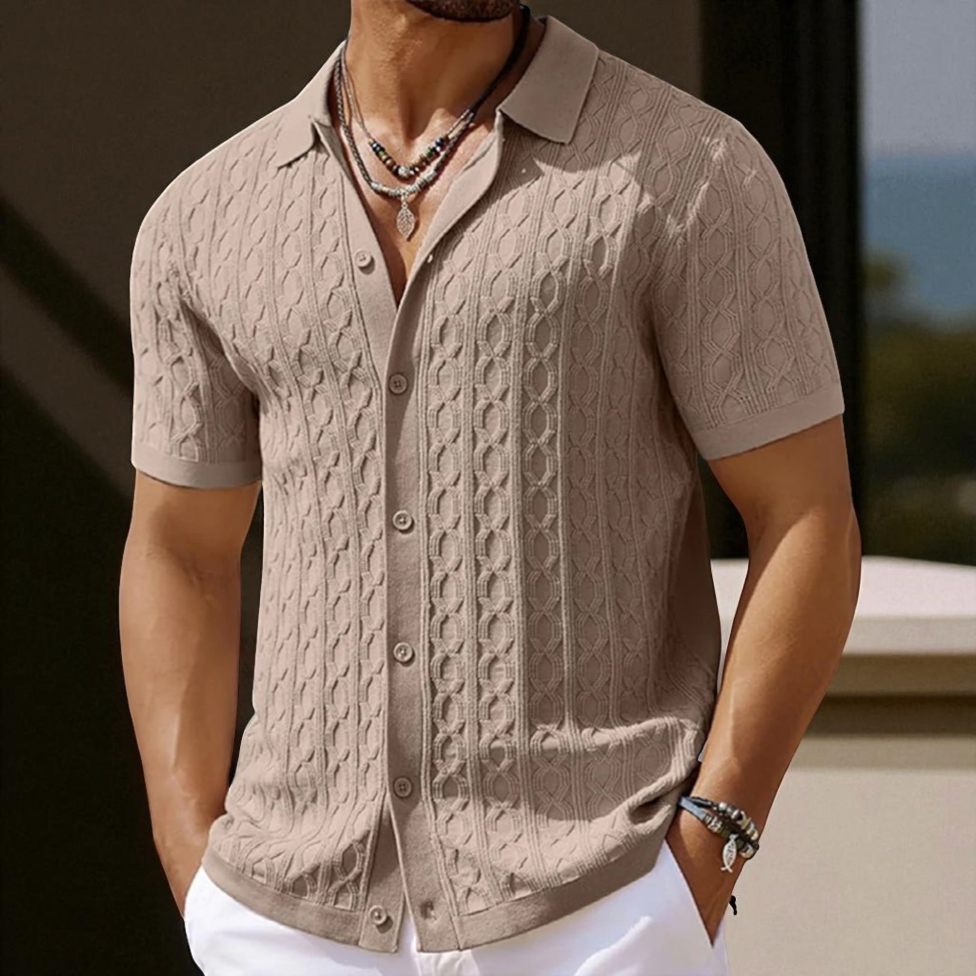 Experience next-level comfort, crafted from a cooling knit material designed to keep you feeling great all day. This slim fit button down lets the air flow freely, blending easy style that's your go-to for chill days or any casual get-together.