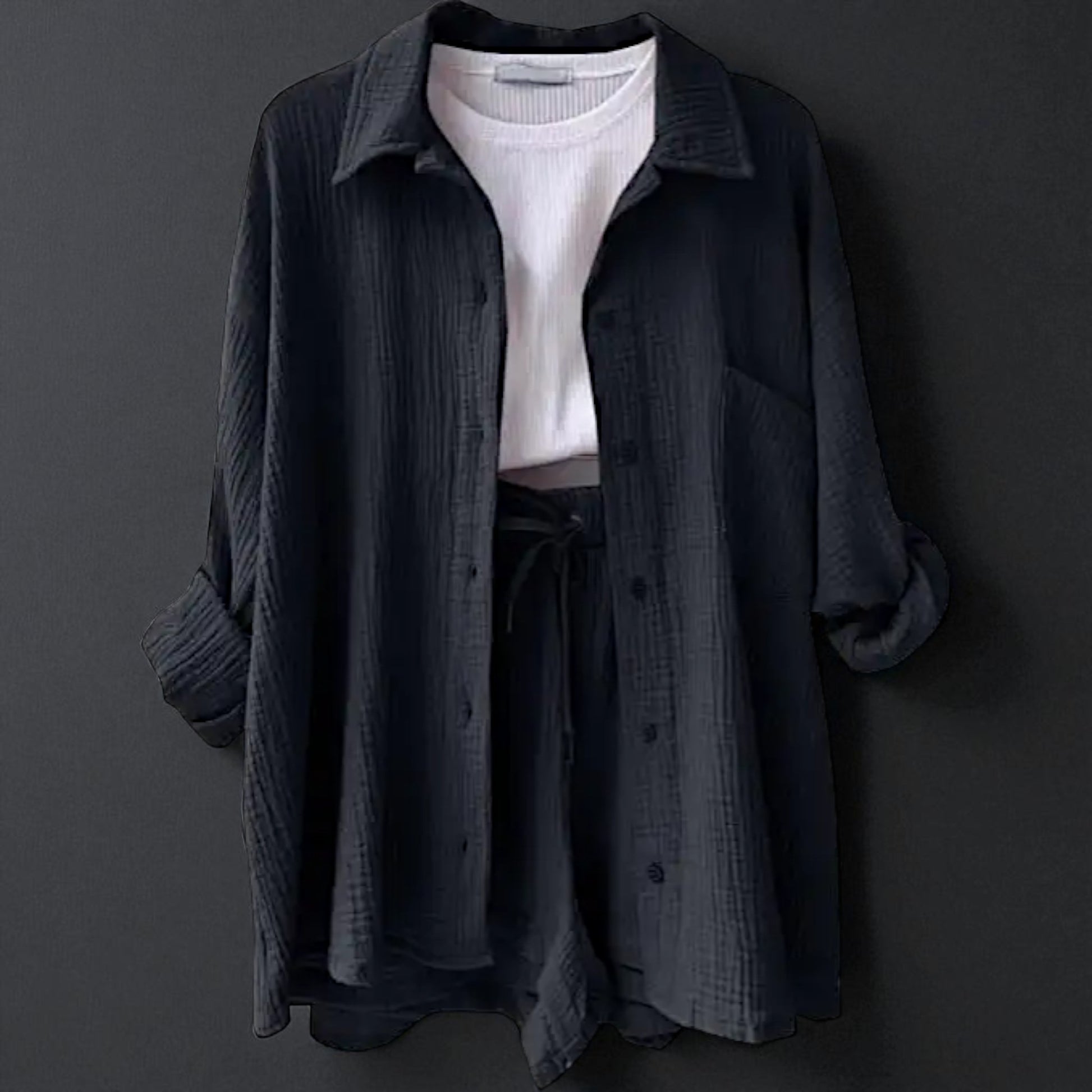 Crafted from super soft cotton, this flowy two-piece features an elastic drawstring waist and a convenient single pocket. It's designed for ultimate comfort, taking the guessing out of what to wear for sunny escapades or easygoing days.