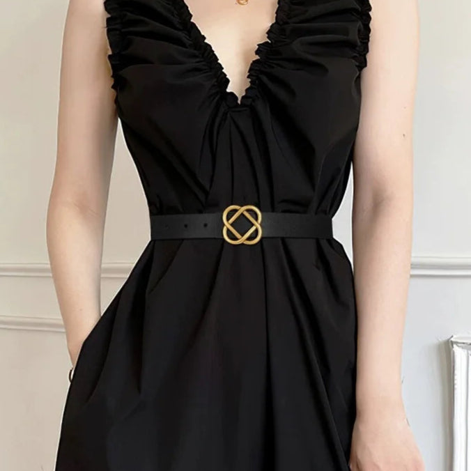 The Trinity Cinch instantly defines your waist with its striking intertwined gold buckle. Crafted from premium Split Leather, this essential piece from Grayson & Grace offers versatile styling with its 39-inch length, adding a touch of modern sophistication to any look. It's the perfect accent for dresses, jeans, or skirts.