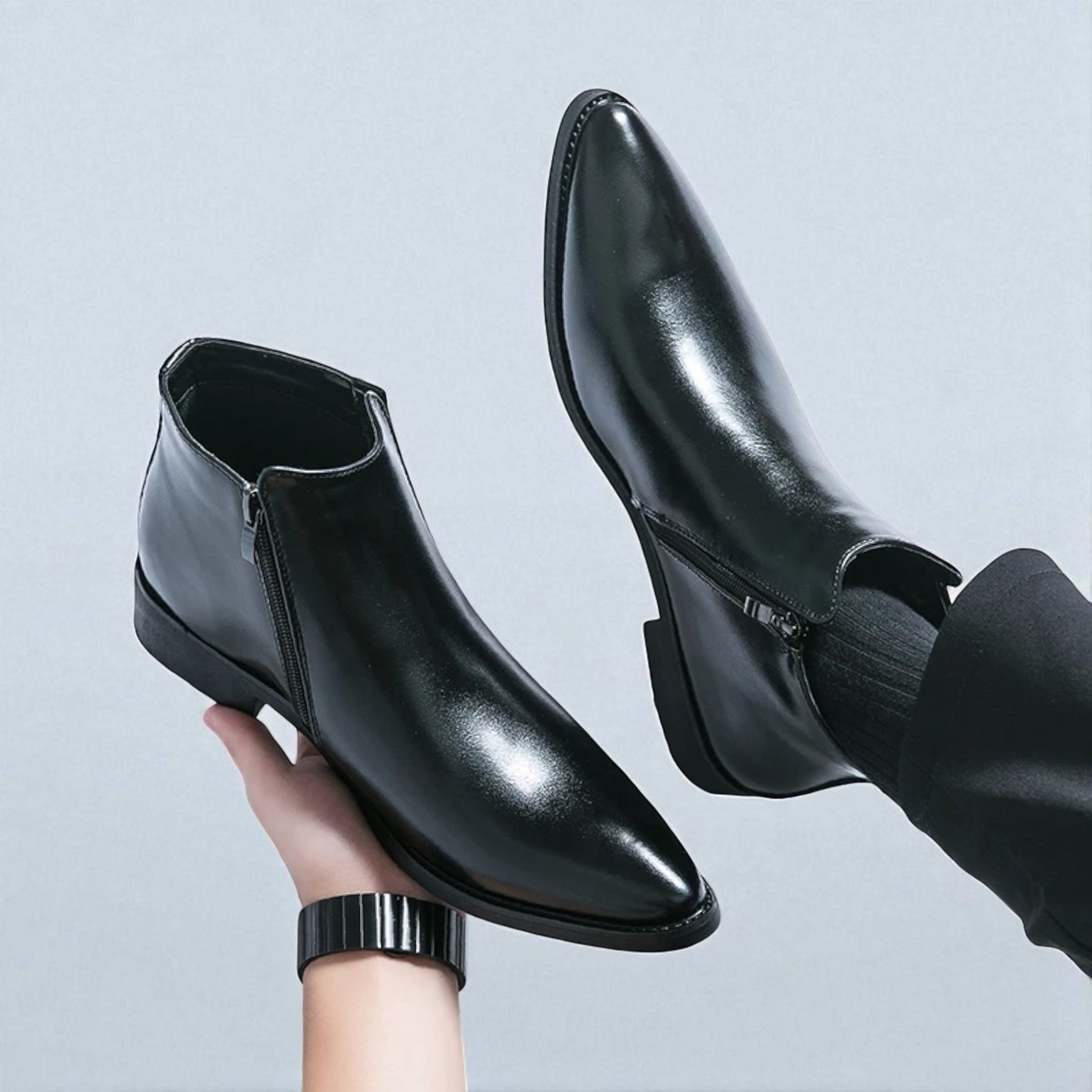 Crafted from premium cow leather with meticulous hand stitching, these boots feature a low heel and rubber sole for ortho comfort. The convenient side zip and elastic side ensure a custom, comfortable fit, perfect for any occasion.