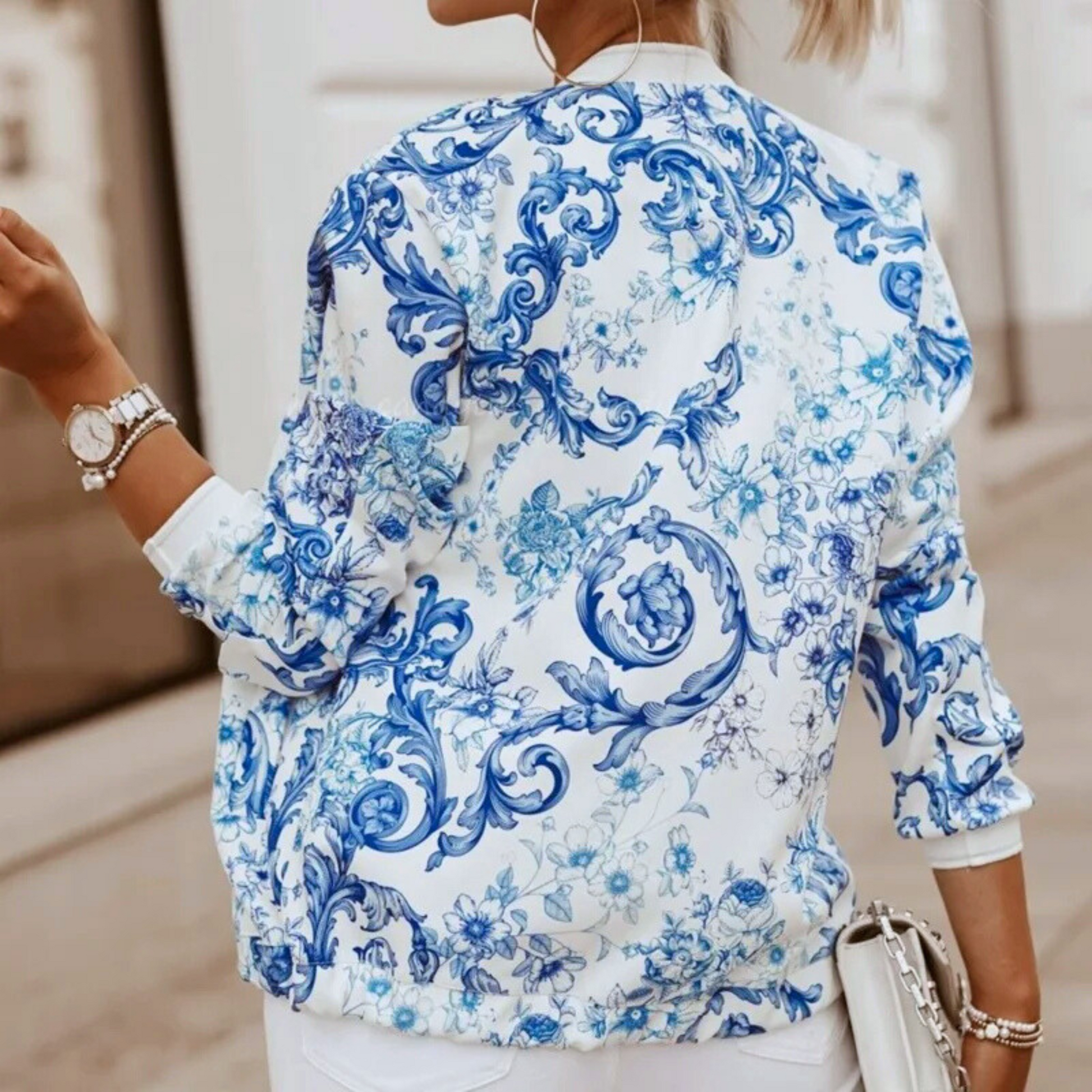 Command every room in the Vista Bomber Jacket, designed to stand out. Its vibrant print and lightweight feel are perfect for layering. Zip it up for instant chic, adding that signature Grayson & Grace touch to your everyday.