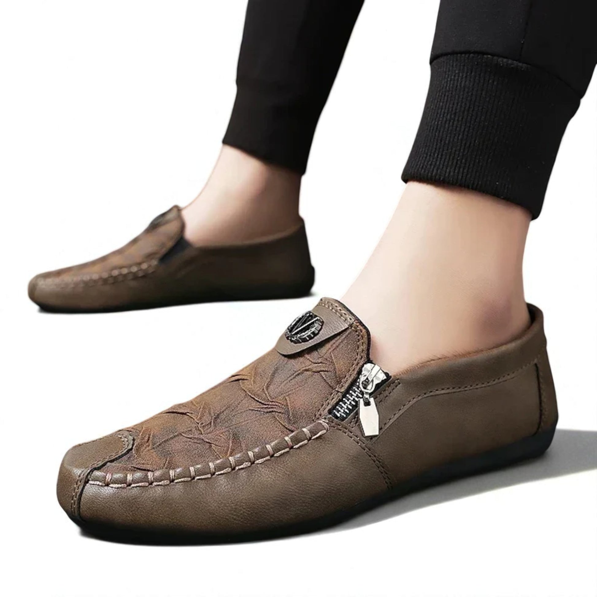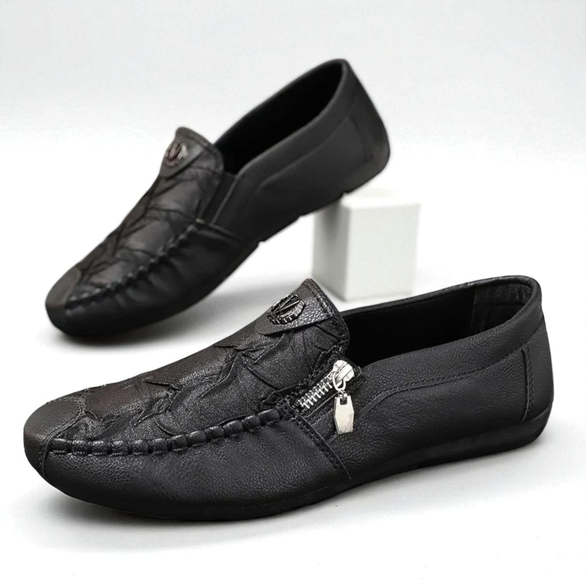 Featuring a unique textured top for breathable comfort and a sleek side zipper for easy slip-on wear, the Vito Zip Loafer's durable rubber sole provides lasting comfort. This loafer redefines casual sophistication, offering effortless style with a modern edge.