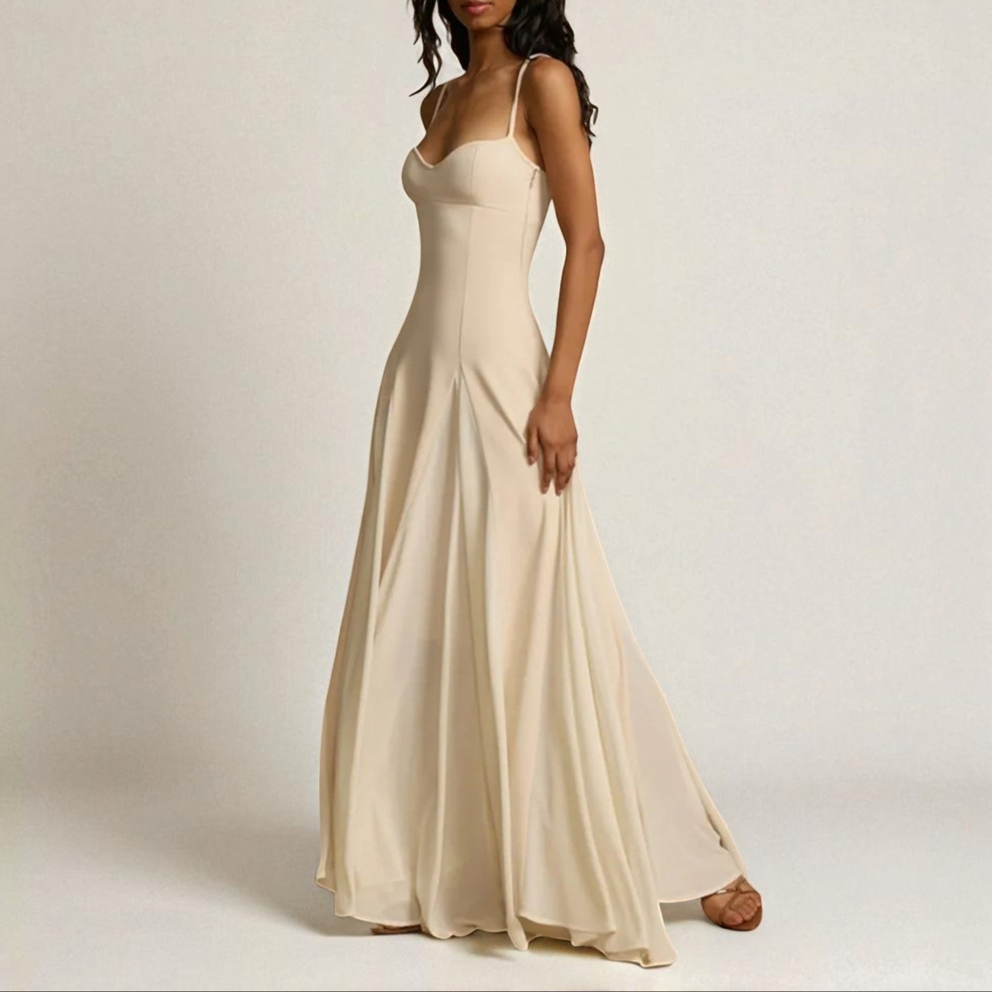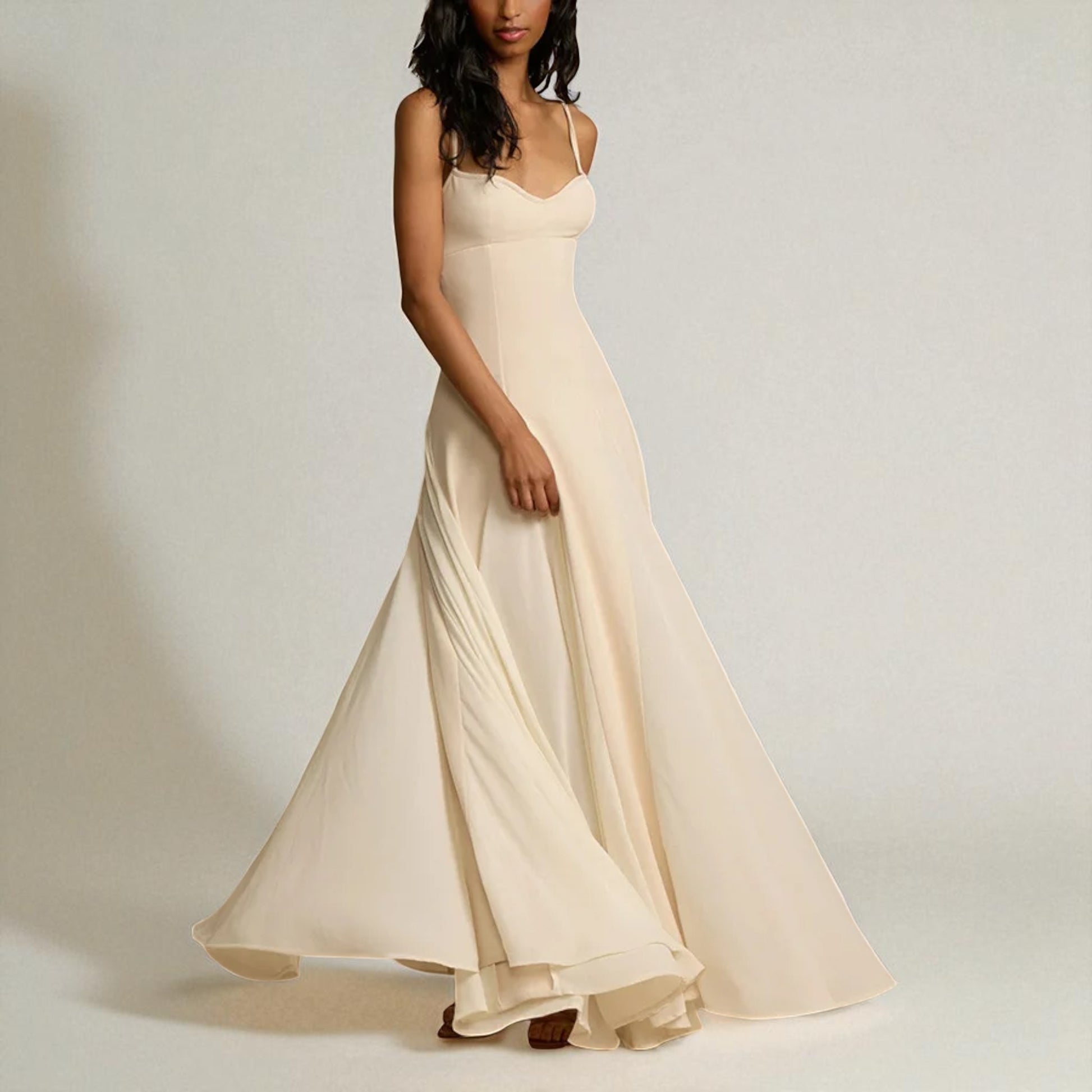 Designed with delicate spaghetti straps, a flattering sweetheart neckline beautifully frames the décolletage, leading to a skirt that moves gracefully with you. It's the perfect blend of modern simplicity and timeless elegance.